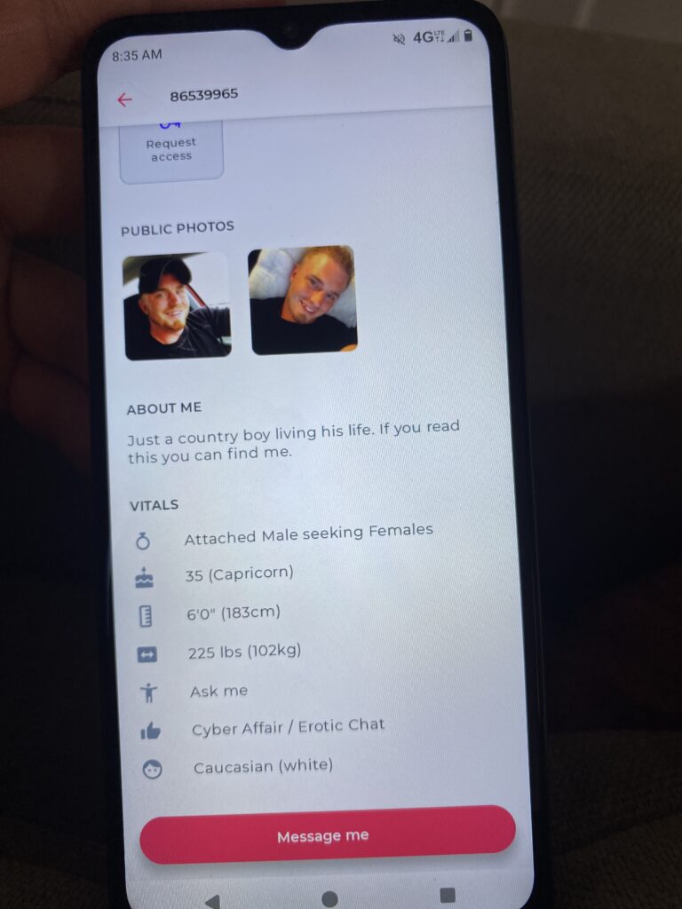 “This fucking loser has a wife that’s obsessed with him. She posts him on tiktok all the time, and she tells other women to stay away from him. What she doesn’t know is that he’s on Ashley Madison looking to have affairs with other women. Someone please tell Haley so she can kick his good for nothing ass out the door.”