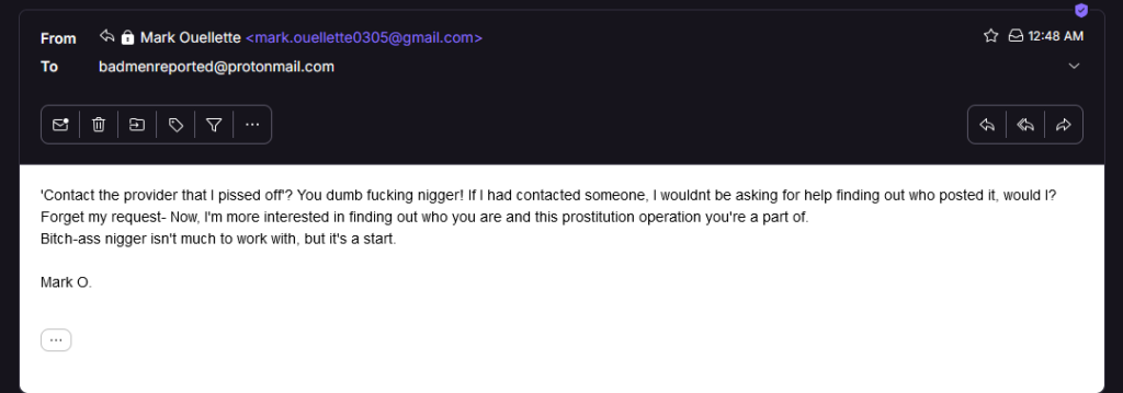 Mark Ouellette is a vile racist who sleeps with escorts